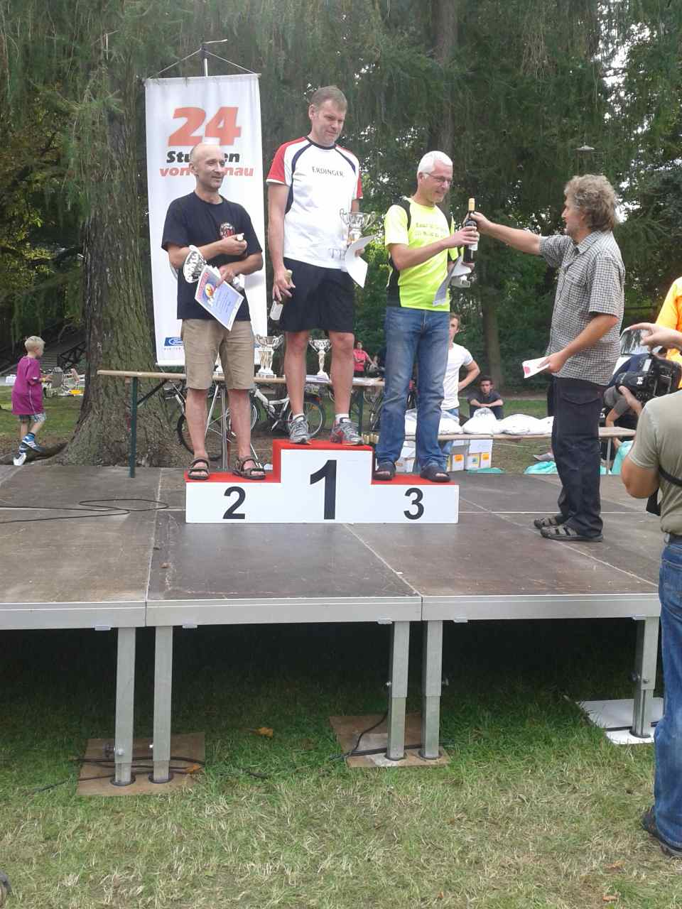 Ralf Leuschner-Stryczynski (auf dem Foto rechts) belegte bei den Männern mit 153,530 Kilometern den dritten Platz. Sein Kommentar: „Sicher kam meinem relativ bescheidenen Ergebnis zugute, dass zeitgleich in Karlsruhe die DM und drei Wochen zuvor die 100Meilen in Berlin stattfanden. So war das Teilnehmerfeld etwas kleiner und die Top-Elite fehlte.“