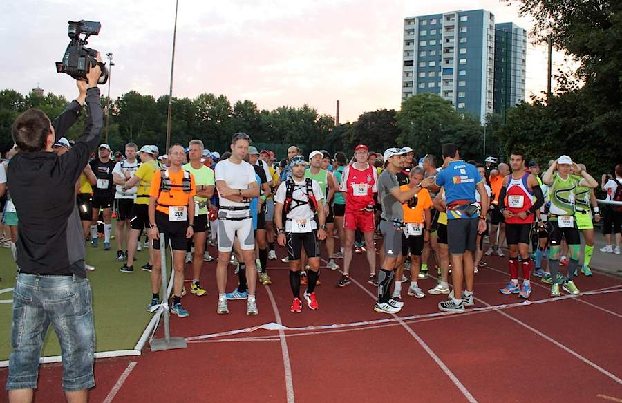 Start bei den 100MeilenBerlin 2013. So gelassen gehen einige an den Start, weil sie den Mauerweg bei der Generalprobe im Mai kennen gelernt haben. (Foto: LG Mauerweg)