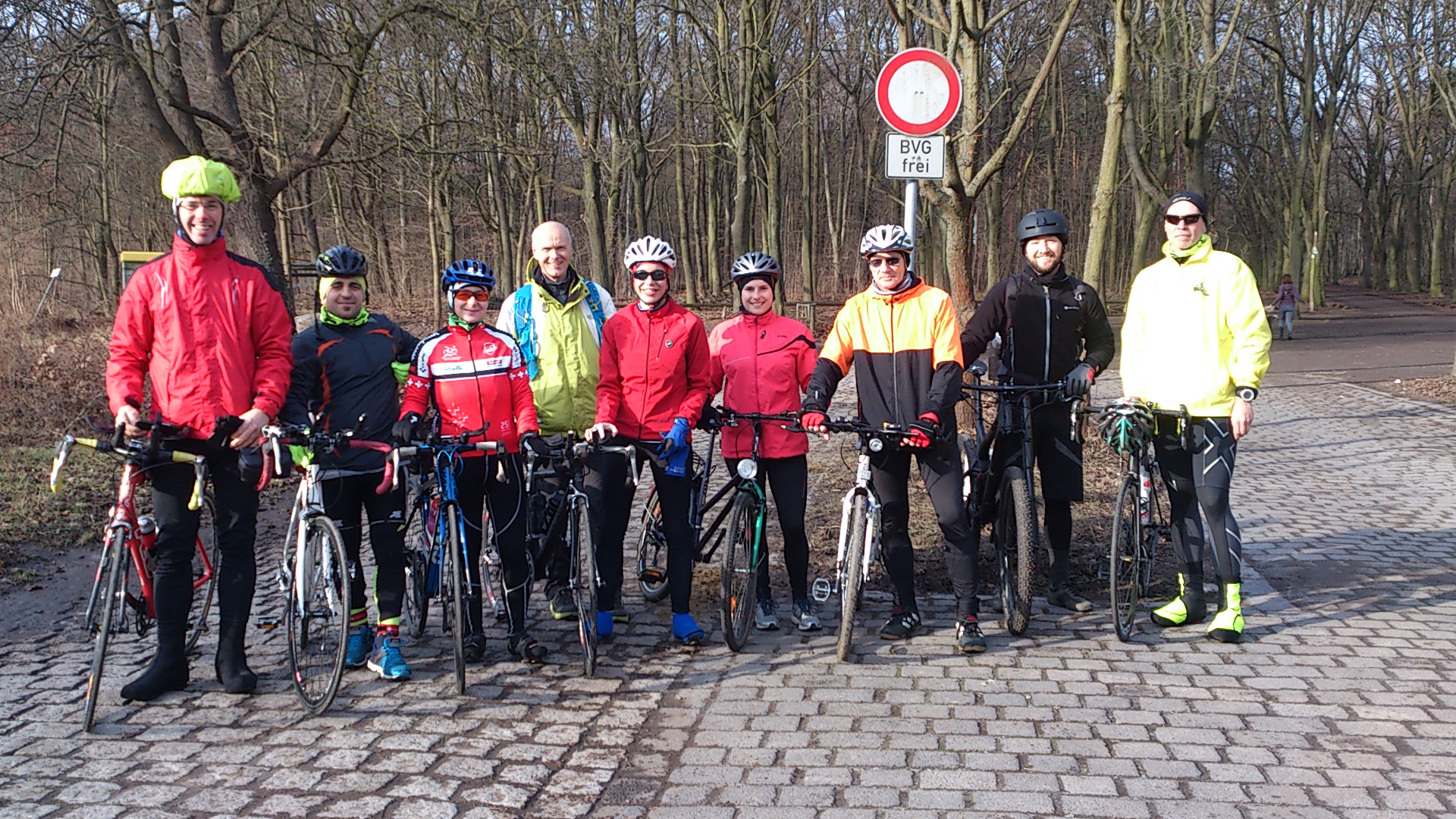 So war der Fuhrpark bei der ersten gemeinsamen Ausfahrt der LG Mauerweg auch richtig bunt gemischt: An der S-Bahn-Station Grunewald trafen Aerolenker auf Federweg, Carbonrahmen auf Gepäckträger und Trinkflasche auf Packtasche. Verbindendes Element der zehnköpfigen Truppe am vergangenen Samstag: die Liebe zum Radfahren.