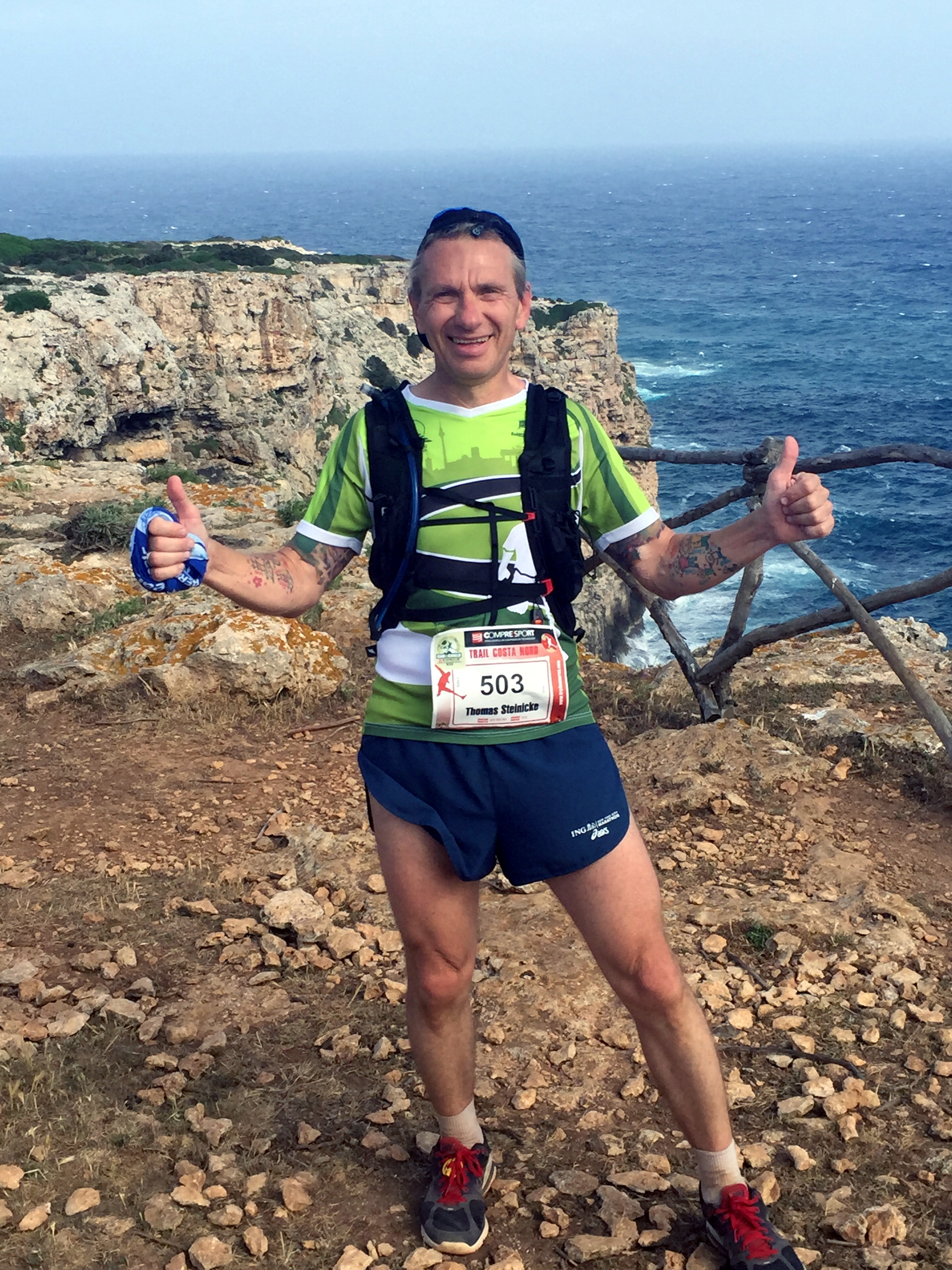 Thomas SteinickeDer „Trail Menorca Costa Nord“: „Auf Menorca zu laufen bedeutet, alle zehn Kilometer in neue Landschaften tauchen zu dürfen. 100,4 km Trail in 18:33 Stunden, welch wunderbare Abwechslung, welch wunderschöne Landschaft, welch unglaubliche Bilder für die Ewigkeit in Läuferköpfen. Und für einen Trailunerfahrenen auch eine echte Herausforderung, reichlich Lehrgeldzahlung inbegriffen.“