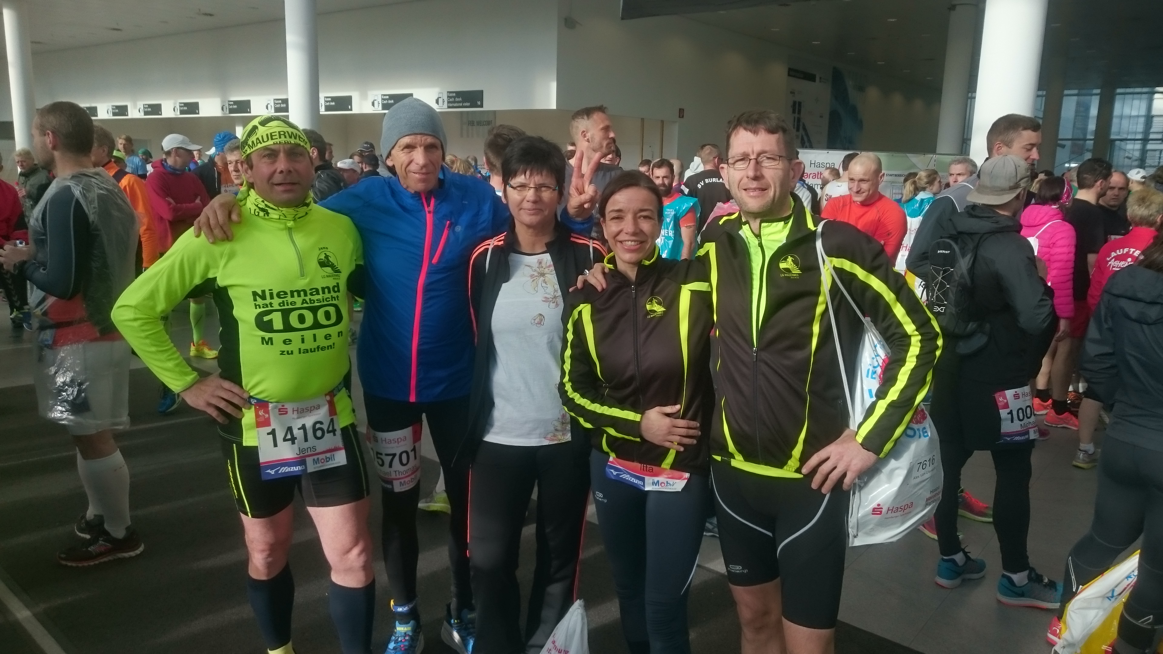 Hamburg, Sonnenschein und ein großartiges Publikum: Diese Kombination wird einigen Neongelben und tausenden weiteren Finishern bestimmt in bester Erinnerung bleiben. Auch – und ganz besonders – unserem Vereinskollegen Mathias De Prest: Jahrelang hatte er darauf hingearbeitet, und am 17. April 2016 kurz vor 12 Uhr Mittag war es so weit: Mit einem sehr gleichmäßig gelaufenen Marathon und einer Endzeit von 2:58:24 hat unser schneller Belgien-Import erstmals die 3-Stunden-Schallmauer unterboten. Herzlichen Glückwunsch!