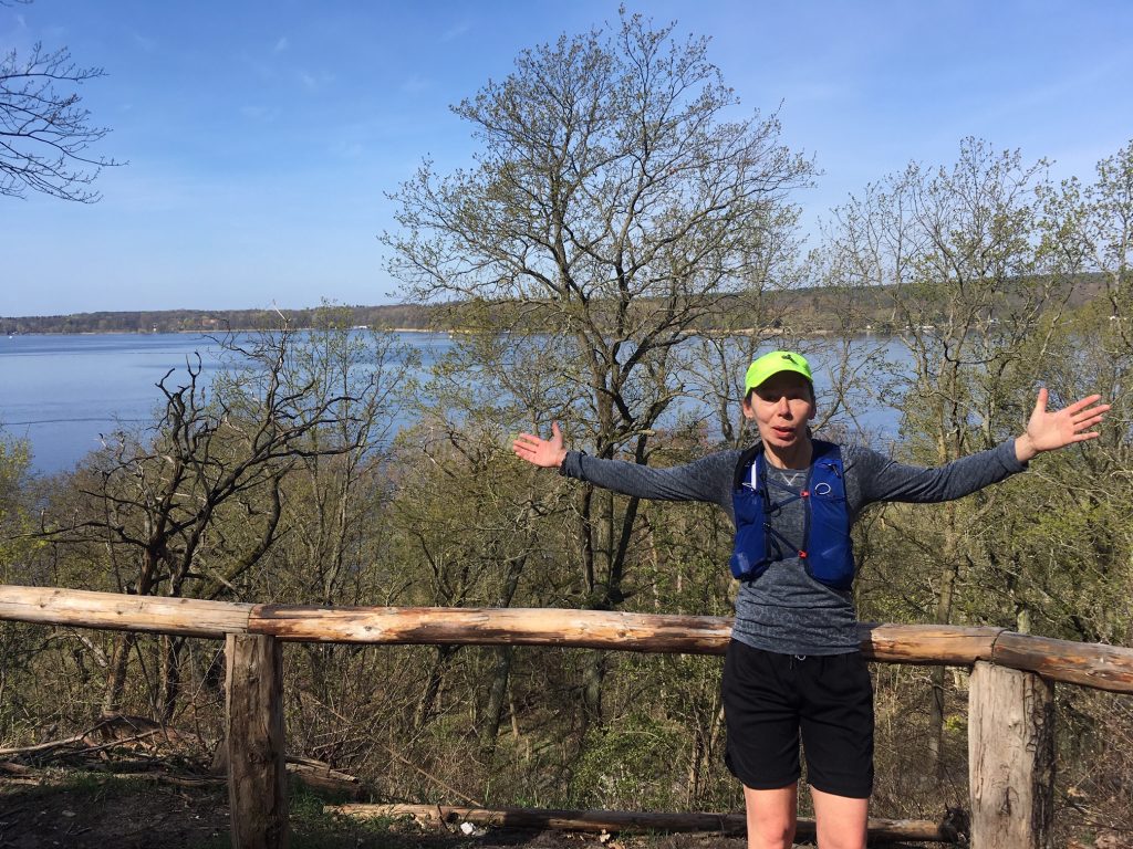 „Mit Start am S -Bahnhof Bellevue sind wir eine wunderbare Strecke über den Teufelsberg, Krumme Lanke, Schlachtensee und den Havelhöhenweg zurück nach Bellevue gelaufen. Auf der Havel zog ein Wasserskifahrer seine Runden. Der Osterspaziergängerverkehr hielt sich noch in Grenzen. Schön war es!“