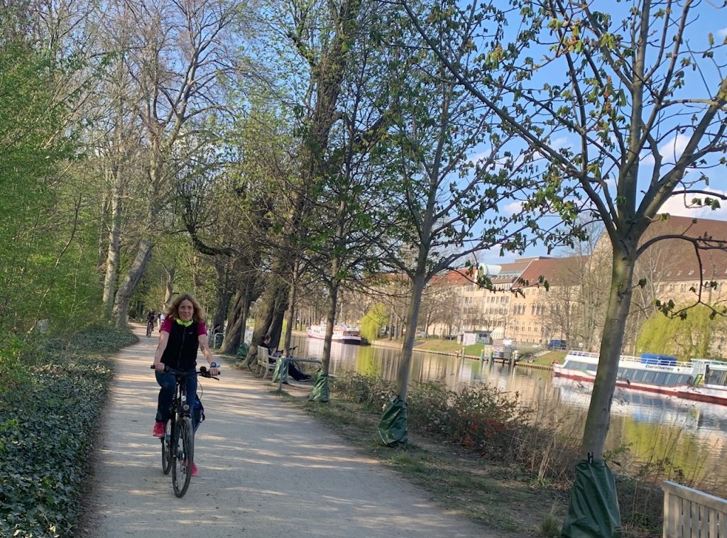 „Eine sportliche Radtour entlang der Havel, von Babelsberg, Potsdam über Ketzin (mit der Fähre übergesetzt), Picknickpause (ohne Ausweiskontrolle), bei Werder und dann zurück nach Potsdam: geht irgendwie auch gut mit einem „lgmauerwegshirt“.“